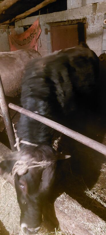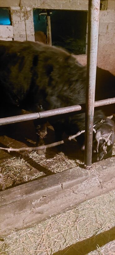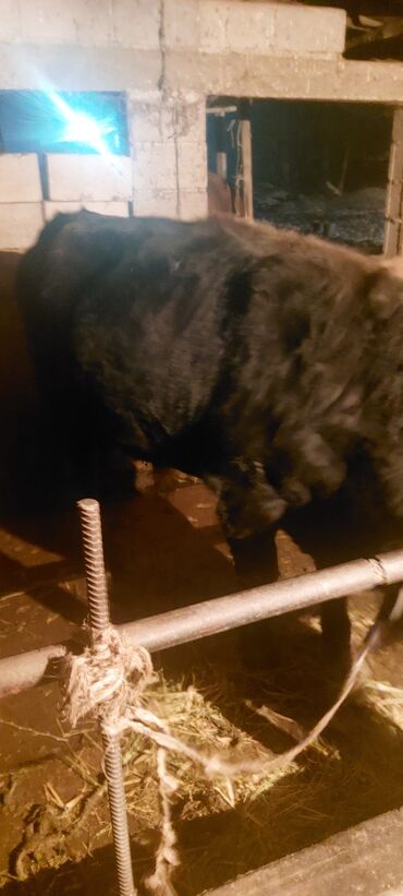 Бык-производитель, крупный мясной тип. Особенности: - Окрас пёстрый: чёрно-белые и светло-палевые участки. - Хорошо развитая мускулатура корпуса и груди, мощный костяк. - Прямой широкий верх, креп...