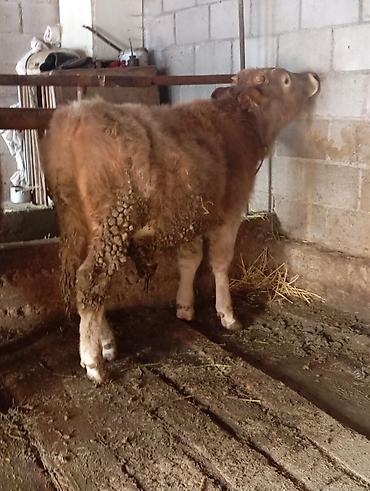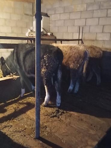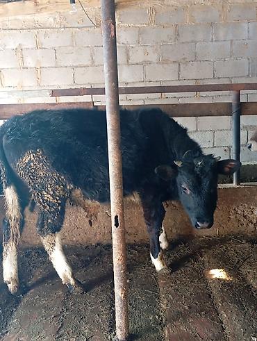 Быки на откорм порода швец смешка ала тоо - Молодняк КРС черного окраса, рогатые. - Содержатся в крытом коровнике, на привязи у кормушек. - Рацион: сено/солома (на фото видно кормушки с грубым корм...