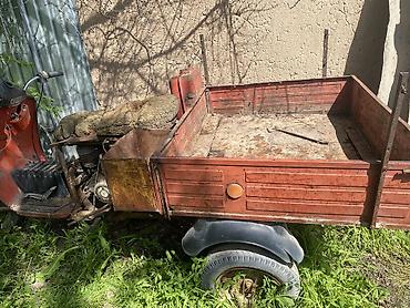 Трёхколёсный грузовой мотороллер (прицепной трицикл) советского типа бензин . Основные особенности: - Передняя часть со скутерным рулём и круглой фарой. - Задняя грузовая платформа металлическая,...