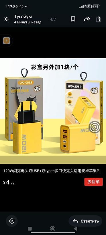 3) Зарядное устройство 120W (изображение упаковки «2PD+2USB»):