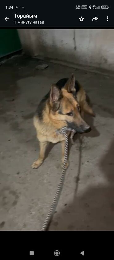 Немецкая овчарка (окрас чепрак). Крупного формата, крепкий корпус, стоячие уши, густая шерсть с выраженным подпалом. Подходит для охраны двора и помещения, внимательная и бдительная. Быстро ориентируется на местности, хорошо реагирует на голосовые команды базового уровня. Уравновешенный тип поведения, контактная с владельцем.