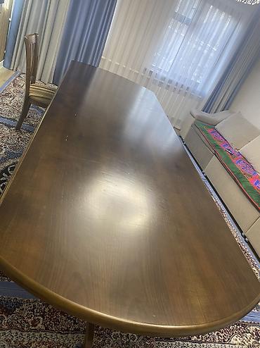 Деревянный стол 3 метра в длину, 1.1 ширина В складном виде длина 2,5 метра. Полностью дерево, хорошего качества Есть небольшой торг Стулья продаются отдельно по 7000 Есть торг, пишите