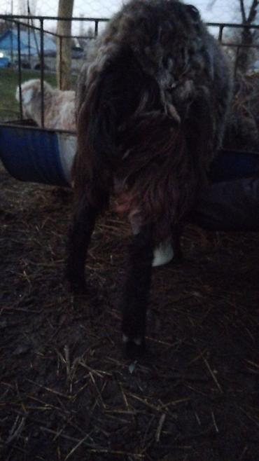 Коза, рогатая, тёмной масти (чёрная/тёмно-каштановая), с густой длинной шерстью. Компактное телосложение, крепкие конечности, ровная спина. Видно развитое вымя. Подходит для личного подворья: молочное направление, возможен настриг пуха/шерсти. Неприхотлива в содержании, пасётся на выгуле, спокойная, ручная — не боится людей и детей.