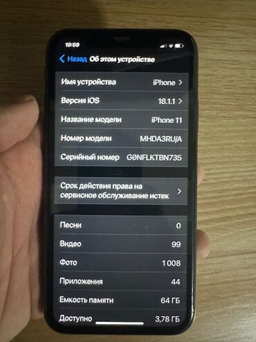 IPhone 11, Б/у, 128 ГБ, Черный, Кабель, 100 %