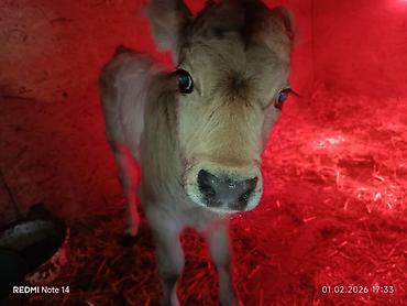- Кормление с рождения: молоко/ЗЦМ с поением из ведра, постепенный ввод сена и стартерного комбикорма.