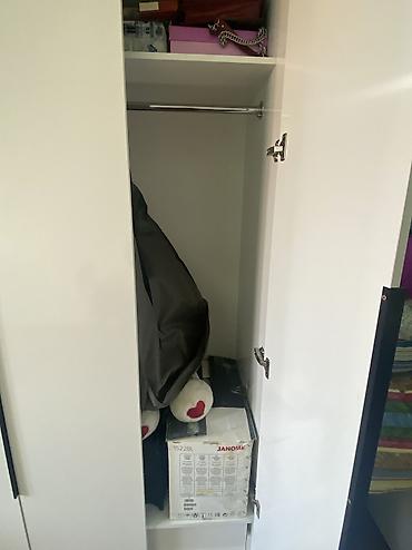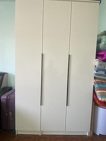 Шкаф-купе/распашной 3-дверный, белый - Современный минималистичный дизайн, гладкие фасады белого цвета. - Вертикальные длинные ручки контрастного золотистого/медного оттенка. - Корпус и фасады из ...