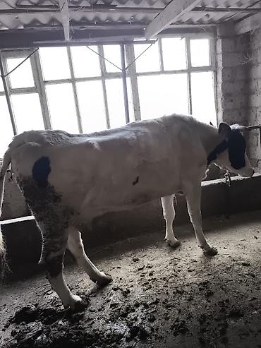 Бык мясного направления. - Окрас: черный с белыми отметинами на морде и брюхе. - Возраст: молодой взрослый (по фото — сформированное телосложение). - Рога развиты, крепкое телосложение, мощная гру...
