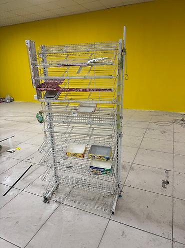Универсальный стеллаж-витрина из дерева и металла. Конструкция состоит