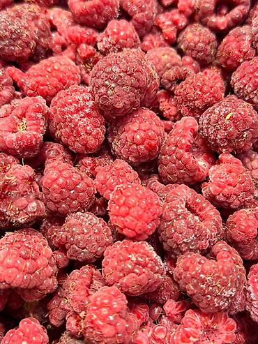 - Цельные ягоды малины, шоковая заморозка (IQF) — сохраняют форму, аромат и вкус.