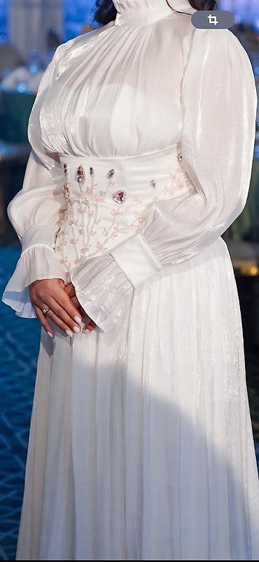 Ак түстөгү вечерный көйнөк сатылат , бир жолу гана кийилген , жаңы боюнча. Материалы сапаттуу. Болгону 1999 сомго сатам, озум 5000 сомго алгам WB дан суротто корсотуп койдум. Размери 44 ( s )