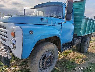 ЗИЛ самосвал, бортовой, с гидроподъёмником кузова. Основные характеристики: - Колесная формула 4x2 - Односкатные задние колеса, внедорожные шины - Металлический кузов-самосвал с высокими бортами, ...