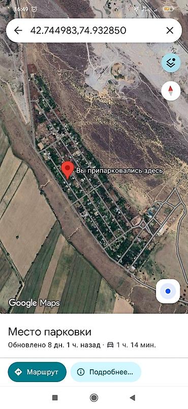 Земельный участок 5.55 соток, Юрьевка (окрестности Канта) - Площадь: 5.55 соток (периметр по замеру ~101 м) - Расположение: с. Юрьевка, близко к г. Кант; в направлении Джар-Башы. На спутниковых сн...