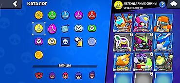 - Каталог скинов открыт; легендарные скины — 2 из 40.