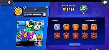 Аккаунт Brawl Stars Основное: - Трофеи: 5 436 - Путь к славе: I -