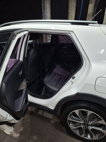 - Кузов: компактный кроссовер, белый цвет, фирменная решётка Kia, серебристые рейлинги на крыше, «акулий плавник» антенна.