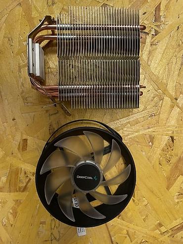 - Радиатор DeepCool с тепловыми трубками из меди и алюминиевыми рёбрами.