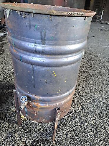 Металлическая бочка толстостостенная для нагрева воды, на подставке