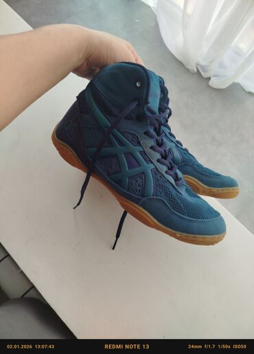 Борцовки ASICS Matflex, цвет сине-бирюзовый с карамельной подошвой.