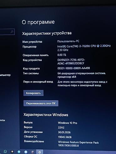 - Процессор: Intel Core i3-7020U, 2.30 ГГц (2 ядра/4 потока) — плавная работа офисных программ, браузера, учебных приложений.