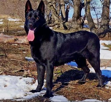 Черная собака крупного размера (похожа на овчарку) для охраны и компаньонства. Особенности: - Однотонный черный окрас, плотная блестящая шерсть. - Выраженная мускулатура, крепкий костяк, прямой си...