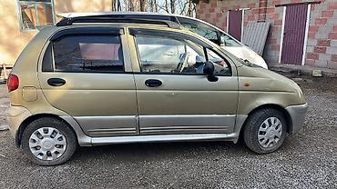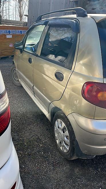 Daewoo Matiz, хэтчбек 5 дверей, золотисто‑бежевый цвет. Киргизская регистрация (номер KG 08 791 ASO на авто). Компактный городской автомобиль с экономичным бензиновым двигателем и передним приводом.