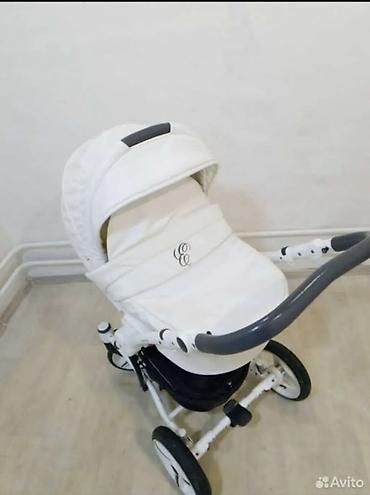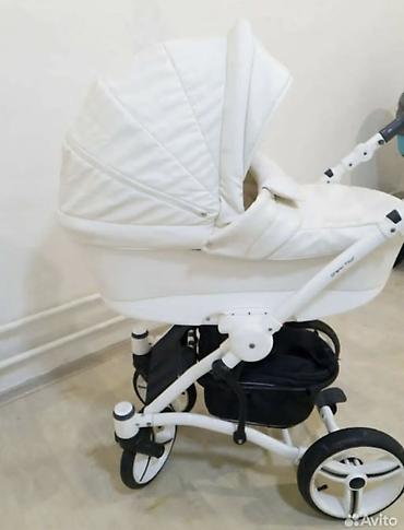 Детская коляска 2 в 1, кожа белая