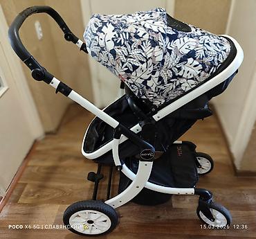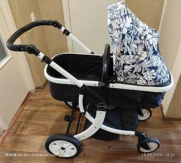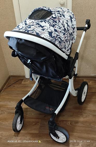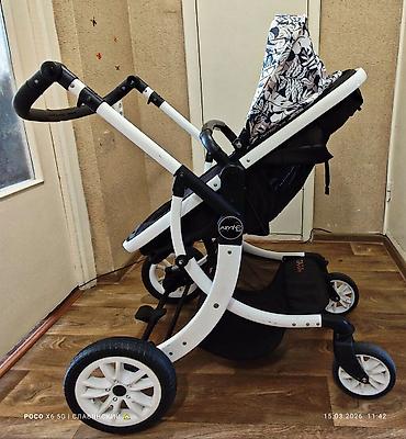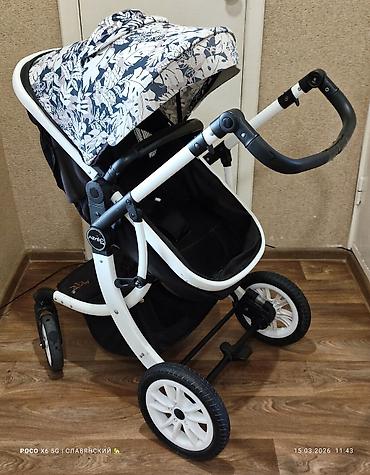 Практичная коляска для города и парка: маневренные передние колеса, устойчивые задние, большой кап и удобная регулировка положения сиденья/люльки. Компактно складывается вместе с рамой.
