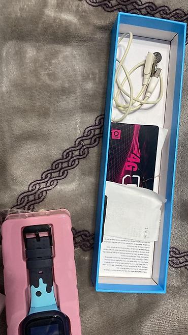 - Сенсорный экран, яркий детский дизайн ремешка (голубой/черный с отверстиями для вентиляции).