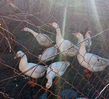 Домашние гуси, белые, взрослые. Крупное поголовье с оранжевыми клювами и плотным оперением. Подходят для разведения и получения мяса и пуха, неприхотливы в содержании, хорошо пасутся и держатся ста...