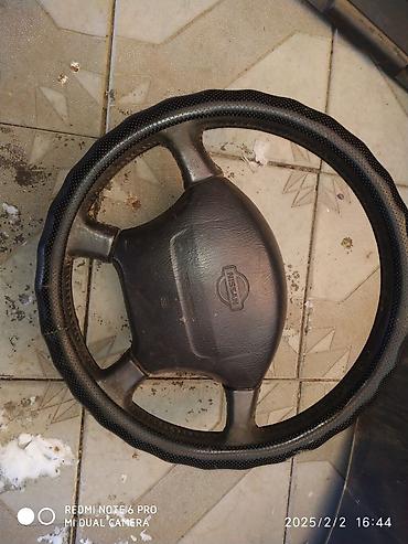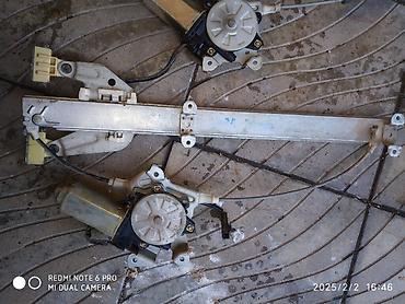 Mercedes-Benz E‑Class (W210), салон и оборудование. - Кузов: седан, серебристый цвет. - Интерьер: серая кожа, вставки «под дерево», чехлы на сиденьях, задний подлокотник, карманы на спинках передн...