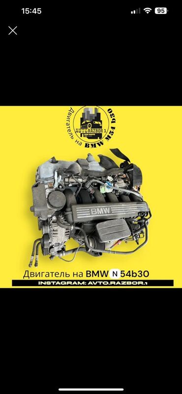 Двигатель BMW N54B30, представленный на изображении, является бензиновым агрегатом, предназначенным для установки в автомобили BMW. Этот шестицилиндровый рядный двигатель известен своей надежностью и производительностью. Модель M54B30 широко использовалась в различных моделях BMW, обеспечивая баланс мощности и эффективности. Визуально двигатель выглядит комплектным, с коллектором и другими основными компонентами.