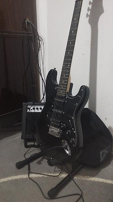 Идеально как готовый набор для начала занятий на электрогитаре (инструмент + усилитель и аксессуары), а также для игры «вживую» и домашних репетиций на акустике. Все основные аксессуары видны на фотографиях.