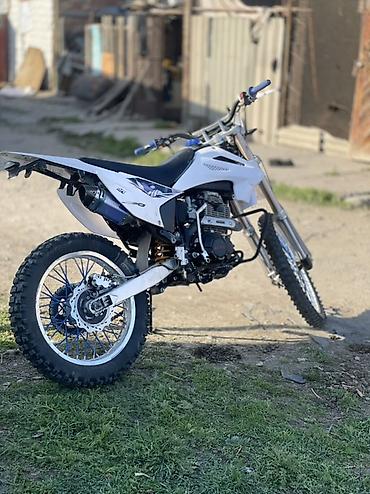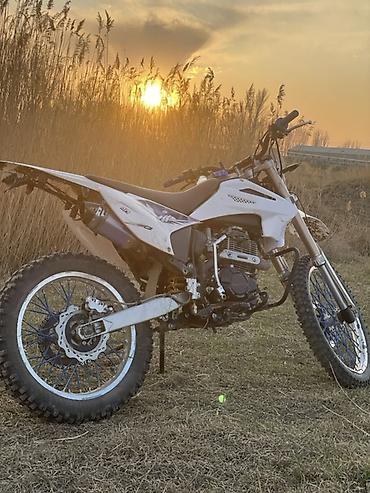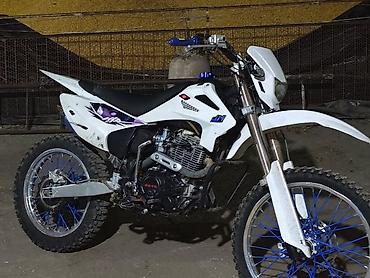 Эндуро-мотоцикл (кроссовый класс), белый пластик с фиолетовыми вставками. 300 кубов по вложениям по мелочам
