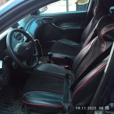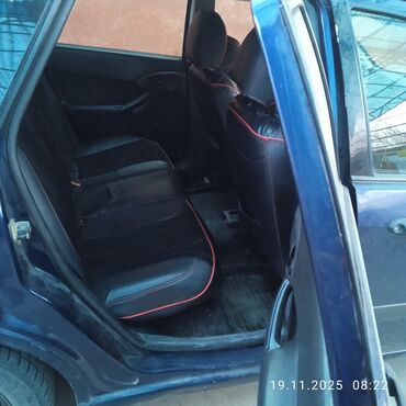Ford Focus I универсал (синий) Комплектация и особенности: - Кузов универсал, рейлинги на крыше - Механическая коробка передач - Салон с чехлами на сиденьях, красная прострочка - Передние электрич...