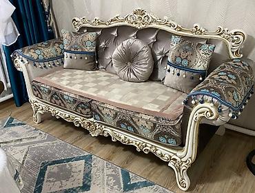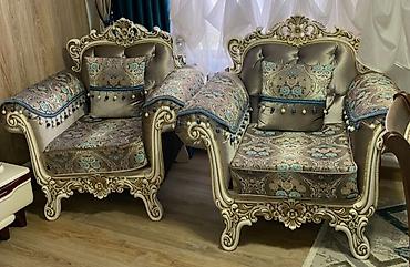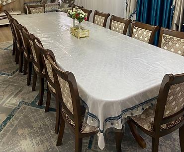 Классический гарнитур для столовой и гостиной в едином стиле (кремовый цвет с позолотой и резными элементами). Состав и особенности: - Большой обеденный стол прямоугольной формы с фигурной кромкой...