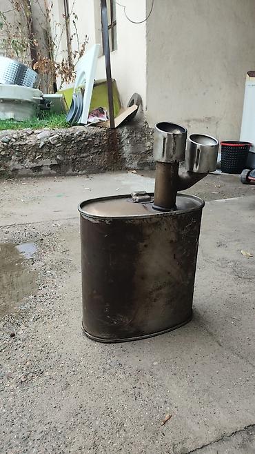 Глушитель с двойным выхлопом (самодельный/тюнинг) - Конфигурация: корпус прямоугольной формы с двумя выходными насадками. - Насадки: полированные, из нержавеющей стали, скошенный срез, диаметр ори...