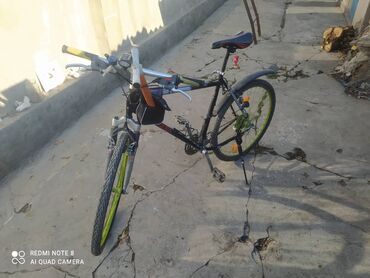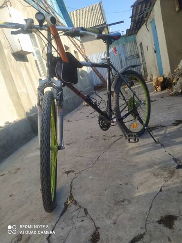 - Колеса: 26", обода двойные, переднее колесо ярко‑салатового цвета.