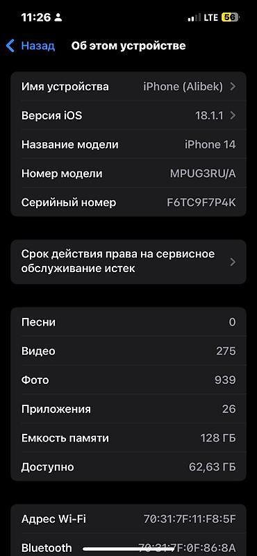 iPhone 14 PRO. 128GB Аккумулятор 80% Face ID | True Tone ✅ Все родное, ничего не меняли! Цена: 39.000 сом! Торг обоснованный