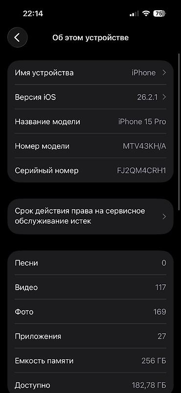 - Память: 256 ГБ, доступно ~182,78 ГБ