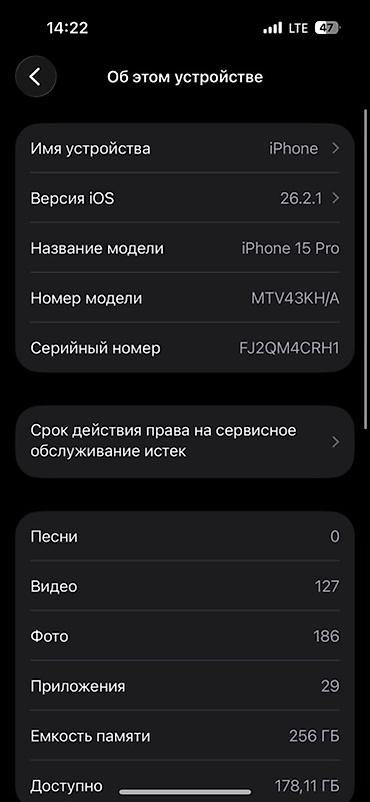 - Память: 256 ГБ, доступно ~178,1 ГБ