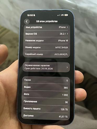 - Модель: iPhone 16 (номер модели MYEC3H/XA)