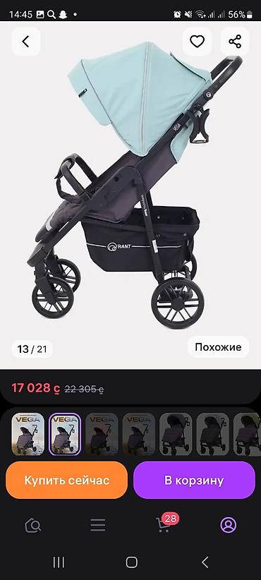Практичная коляска для города и прогулок в любое время года: удобное управление, мягкий ход, компактное сложение и продуманные детали для комфорта ребёнка и родителя. Цвет верха — мятный, низ — тёмно-серый. Бренд RANT, модель VEGA.