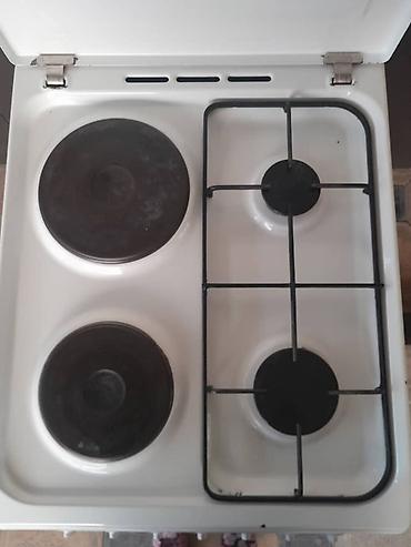 - Варочная поверхность 4-конфорочная: 2 газовые горелки + 2 электрические ТЭН-конфорки — удобно готовить при любом типе подключения.