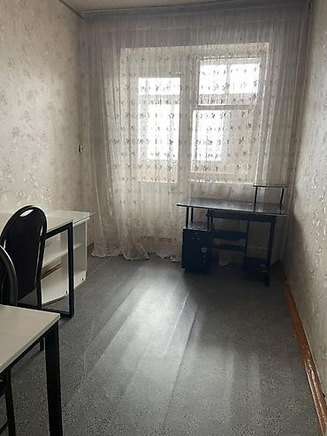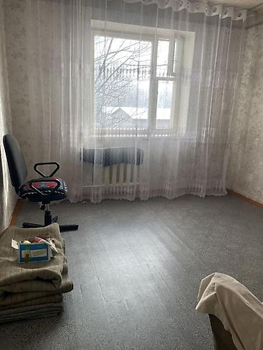 Сдается 3х ком квартира.Светлая комната с большим окном и тюлевыми шторами. Ровные стены с нейтральными обоями, серый линолеум на полу, плинтуса по периметру. Радиатор под окном, потолочный карниз установлен. В комнате размещены: