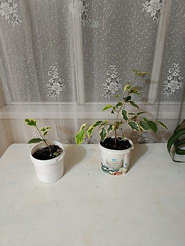 1) Вариегатный фикус Бенджамина (черенки в отдельных горшочках)