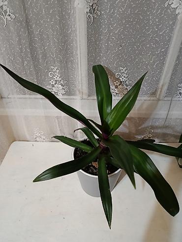 - Длинные изогнутые зелёные листья с белыми полосами.