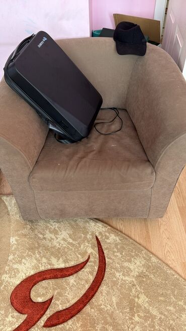 - Кресло: широкое, в том же стиле и цвете, с цельной подушкой сиденья и округлыми подлокотниками