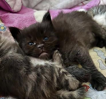 - Внешность: плотная полудлинная шерсть с подшерстком, большие лапы, выразительные глаза; котята с ровным профилем и широкими ушами.