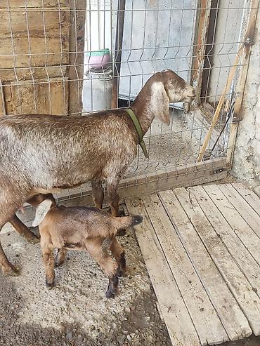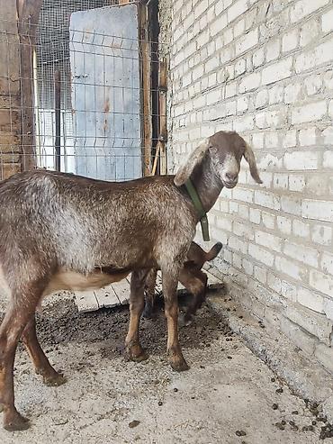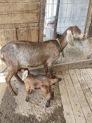 Коза с козочкой англо-нубийская . окот был 5 февраля.в день 1 литр молока и козочка под мамой