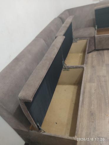 - Обивка: велюр/микрофибра серо-коричневого оттенка, приятная на ощупь, нейтральный цвет под большинство интерьеров.